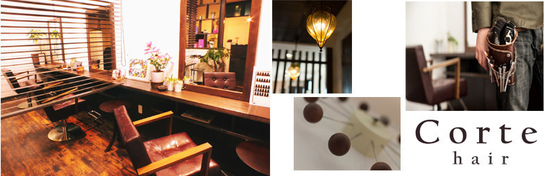 corte hairは、ダークブランと木々の緑に囲まれた癒し空間。ゆったりひろびろとした3席の施術スペースは、お客様が同士が気にならないように、ブラインドで仕切られています。随所にちりばめられたアンティークの小物や、手作り品などを見ているのも楽しい♪