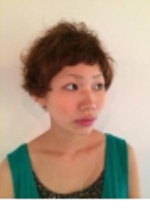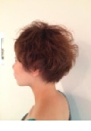 ちょっぴりやんちゃな個性派ショート★マッシュショートをベースにバングは短めからラウンドにカットし、おでこを全開にしたショートバングでオシャレ度がアップ!クセが強い彼女の髪質を全面に生かしたスタイル。直毛の人はパーマで毛先に動きと立体感を+♪